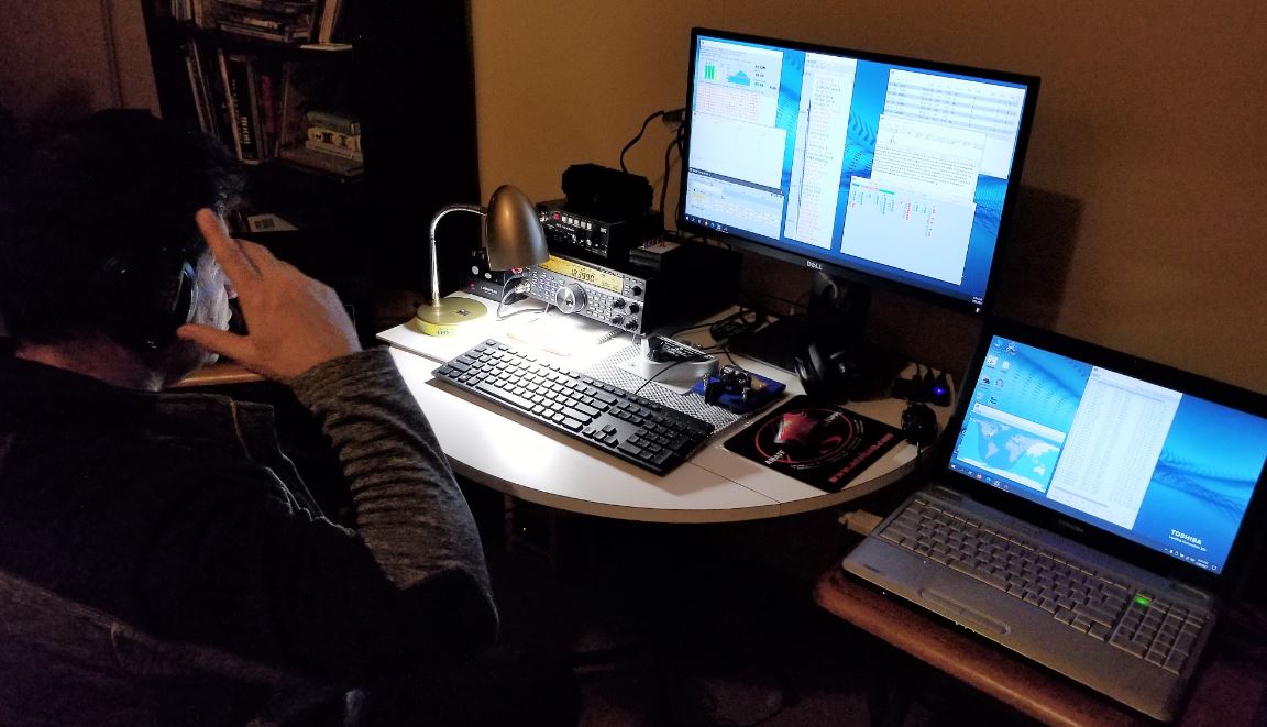 Such was the case for this 160m contest even though we had already done it a few times before. Initially the computer wouldn't connect to the rig (to send band data back and forth) and the WinKeyer keyed the radio down and wouldn't let up. We fixed both of these by restarting N1MM and WinKeyer; after that both worked fine. We put up a second 160m Inverted-L wire antenna but didn't have time to tweak it (other than grounding and radials) and therefore stuck with AC6ZM's Carolina Windom that worked great for the entire 160m contest. And then we had persistent mouse and keyboard oddness as well. Next time we'll keep these devices wireless or have all wire go through a toroid. Mice and keyboards do not like RF like we do.